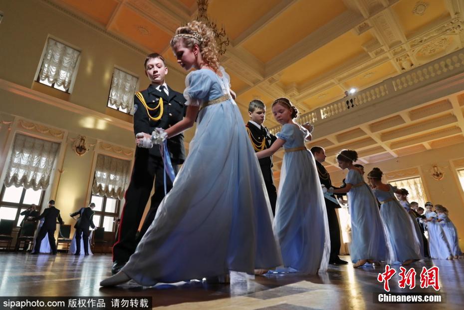 莫斯科学校举办少年军官舞会 俊男美女翩翩起舞