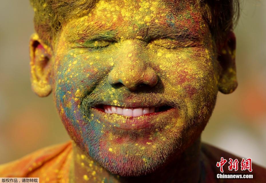 印度民众欢庆胡里节 多彩粉末抛洒出绚烂世界