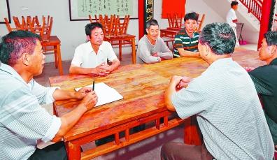图为湖北省大冶市茗山乡杨桥村庄理事会成员在开会研究问题。资料图片
