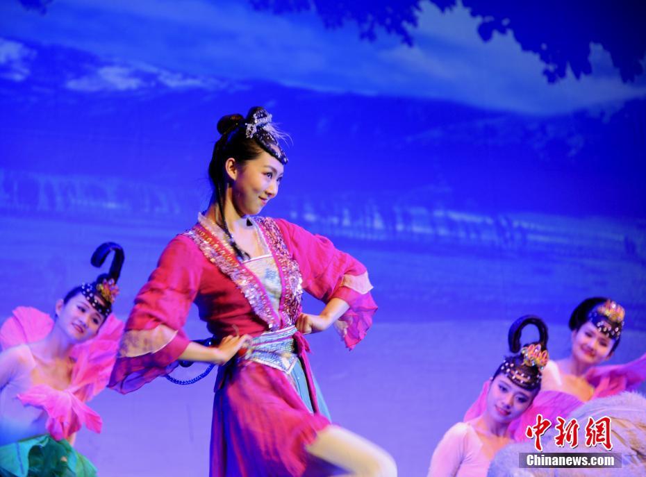 当地时间2月26日晚,中国农历正月十一,在离卡尔·马克思故居咫尺之遥的德国特里尔市“欧罗巴大厅”剧场,一场别致的中国春晚上演。图为舞剧《月上贺兰》。中新社记者 彭大伟 摄