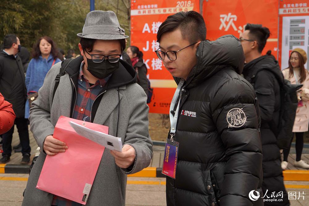 2月27日,考生询问工作人员考试信息。(刘林 摄)