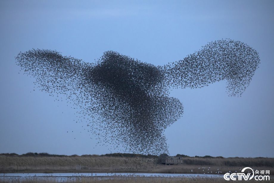英国摄影师捕捉椋鸟群飞壮观景象 鸟群造型百变如梦如幻