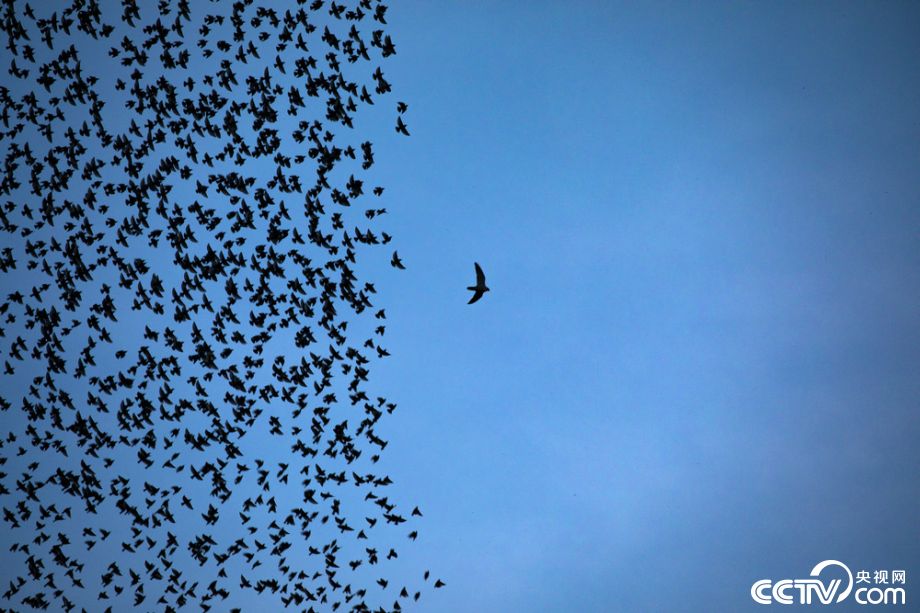 英国摄影师捕捉椋鸟群飞壮观景象 鸟群造型百变如梦如幻