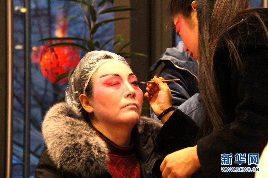 2月27日,在法国巴黎,演员表演剧目《光王私访》。中国湖北省荆门市东宝区梁山调剧团27日晚在法国塞纳河畔巴黎中国文化中心举办专场演出,以独特的唱腔和板式表演了自编剧目《光王私访》,令现场观众耳目一新。东宝梁山调属板腔系统的地方戏剧种,是中国稀有剧种之一。新华社记者张曼摄
