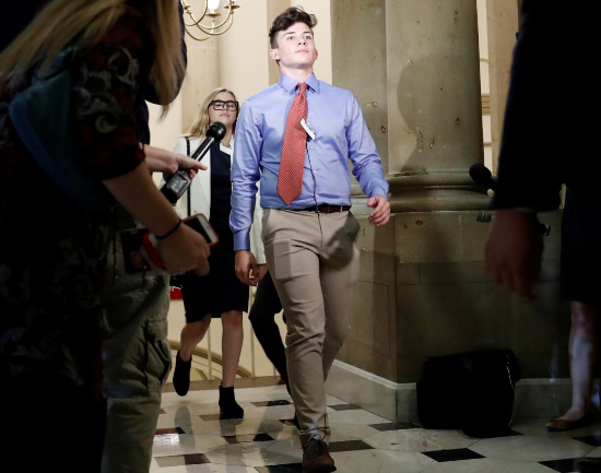 一名学生正在走入美众议院议长莱恩的办公室。(图片来源:路透社)