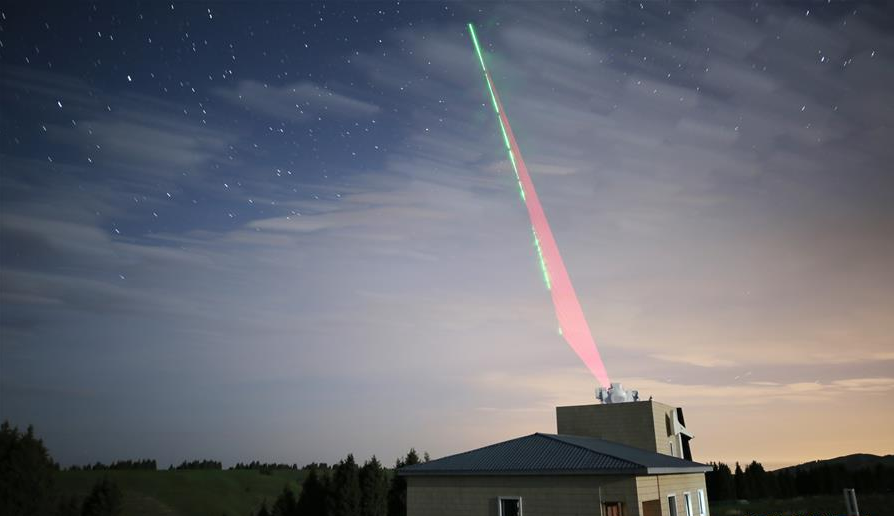 2017年6月15日,在乌鲁木齐南山观测站,“墨子号”量子科学实验卫星过境,科研人员在做实验(合成照片)。新华社记者金立旺 摄