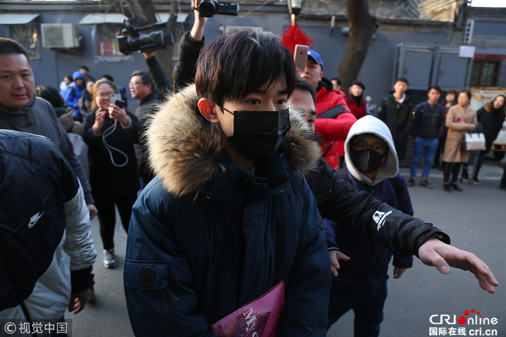 2018年3月2日,北京,易祥千玺低调现身2018中戏复试,他身穿初试同款装备,一样的棉衣和文件袋,这是祈祷好运再次降临吗?图片作者:弩炮/视觉中国