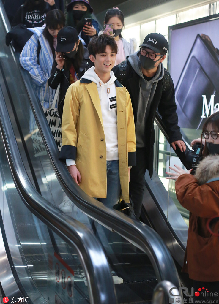 2018年3月2日,吴磊现身机场。吴磊满面春风忍不住仰头大笑 看来是对艺考很有信心了!