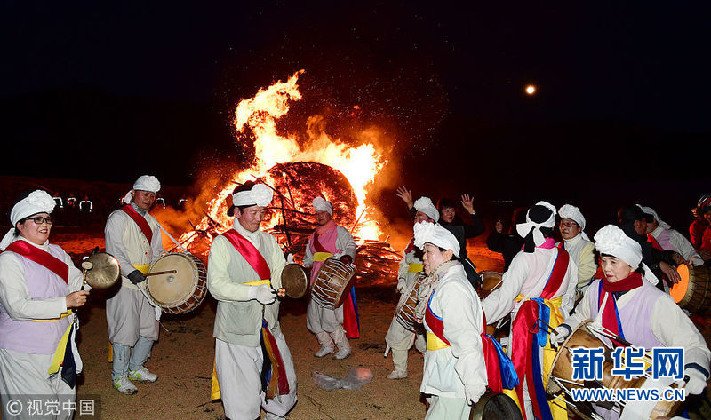 3月1日,韩国首尔,韩国首尔举行野火节庆祝活动,这天的月亮是农历新年的第一个满月,人们在一轮满月下祈祷既是欢庆佳节,也是祈祷一年的丰收与健康。(图片来源:视觉中国)