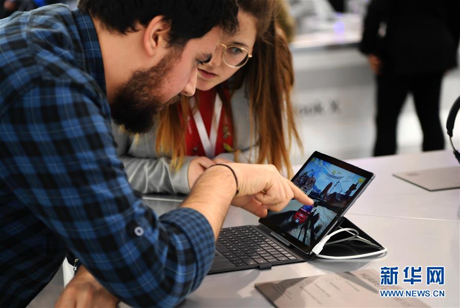 2月28日,参观者在西班牙巴塞罗那举行的世界移动通信大会上体验华为MediaPad M5。新华社记者郭求达摄