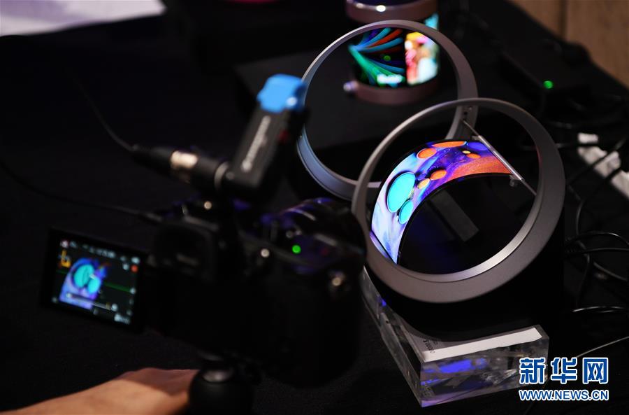 2月27日,一名参观者在西班牙巴塞罗那举行的世界移动通信大会上拍摄中国企业维信诺展出的可弯曲OLED屏幕。2月26日至3月1日,2018世界移动通信大会在西班牙巴塞罗那举行。在本届大会上,众多中国企业向世界展示了各种科技产品,“中国智造”成为全场一大亮点。新华社记者郭求达摄