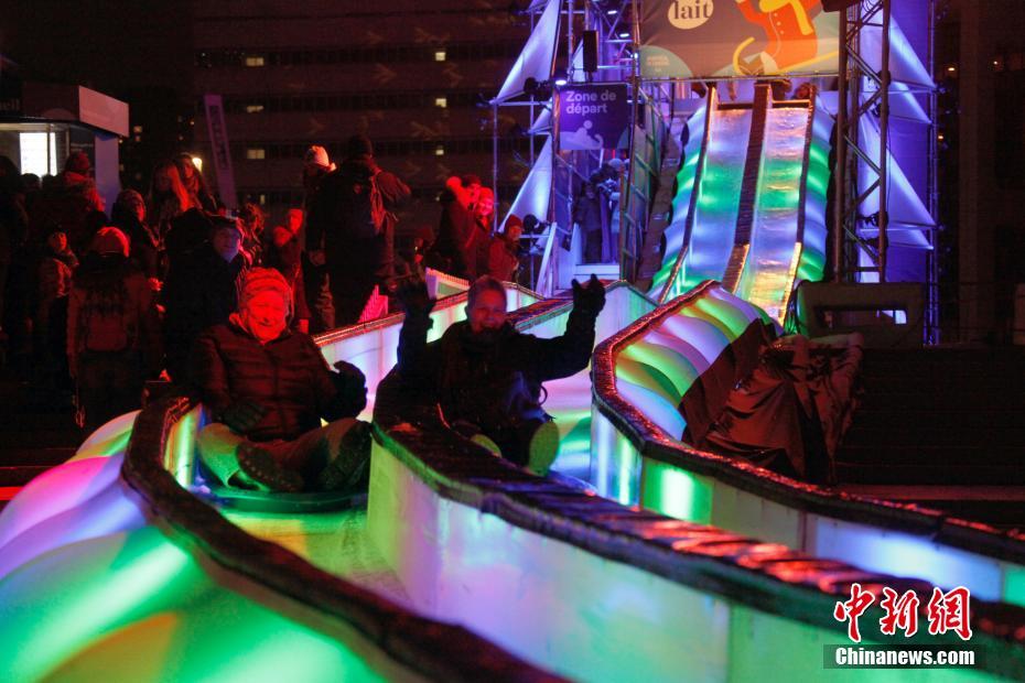当地时间3月2日晚,加拿大蒙特利尔灯火节的游客们体验雪橇的刺激与快乐。始于2000年的灯火节是蒙特利尔规模最大的年度冬季公众活动,各式美食、游戏、文艺表演、展览和若干户外活动等吸引数十万游客乐在其中。 中新社记者 余瑞冬 摄