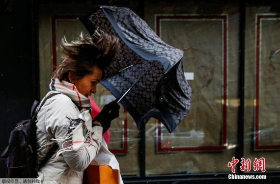 CNN报道称,“炸弹气旋”是指在24小时内气压下降至少24毫巴(约18毫米汞柱)的气旋系统,因其气压减低的速度快如爆炸而得名。“炸弹气旋”会带来剧烈降温、降水和狂风。图为纽约民众顶着强风走在时代广场上。