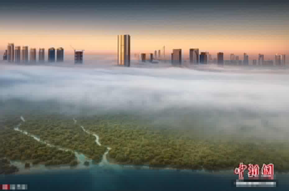2018年3月1日报道(具体拍摄时间不详),26岁的摄影师Khalid Alhammadi在阿布扎比上空拍摄了一组迷雾中的城市美景照,画面仿若人间仙境,天外之城。他爬上了部分中东地区最高的大楼,然后拍摄被迷雾笼罩的城市地标建筑。照片中,一座座摩天大楼和清真寺塔高耸如云,在迷雾之端仿佛造出了一个全新的天空世界,美得让人窒息。图片来源:东方IC 版权作品 请勿转载