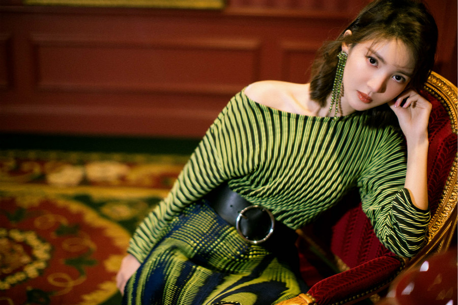 采用奇妙褶皱元素的连衣裙搭配复古腰带,呈现出强烈的层次感与律动感,同色系耳环的点缀更增添了整套look的时尚完整度。