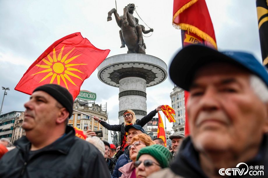 央视网消息:当地时间2018年3月4日,马其顿斯科普里,当地民众举行大规模集会,敦促政府不要在马其顿国名争议上妥协。 视觉中国 南斯拉夫解体后,马其顿以“马其顿共和国”的国名独立,但遭到邻国希腊的强烈反对,认为这个国名暗示着对希腊北部马其顿省的领土要求。作为北约和欧盟成员国,希腊握有一票否决权,其强烈的反对意见成为马其顿加入北约和加入欧盟不可逾越的拦路石。