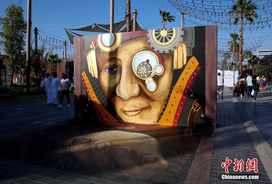 当地时间3月3日,阿联酋迪拜街头展出3D画,细节逼真惟妙惟肖。