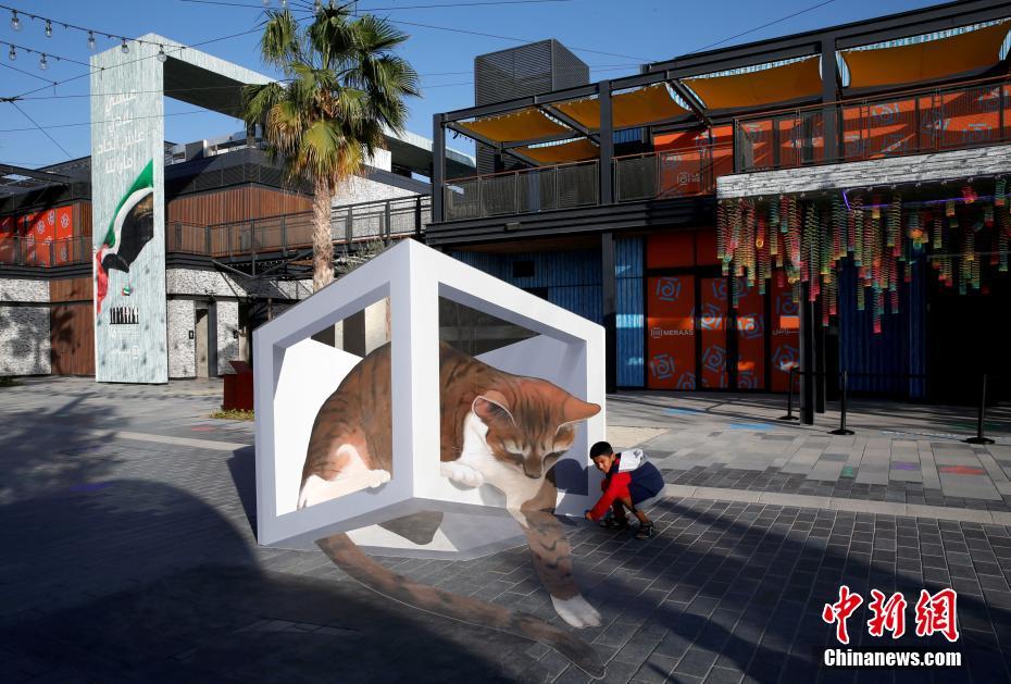 当地时间3月3日,阿联酋迪拜街头展出3D画,细节逼真惟妙惟肖。