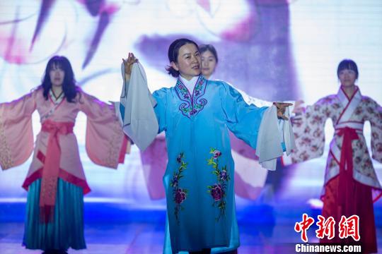 图为身着汉服的女职工上演“汉服秀”。 汤德宏 摄