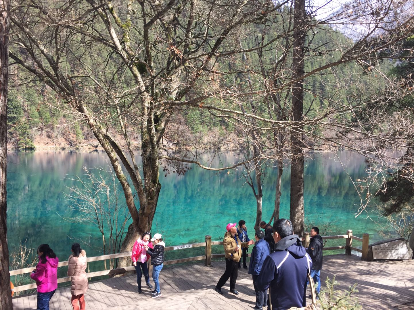 图为游客在镜海旁饱览美景,合影留念。
