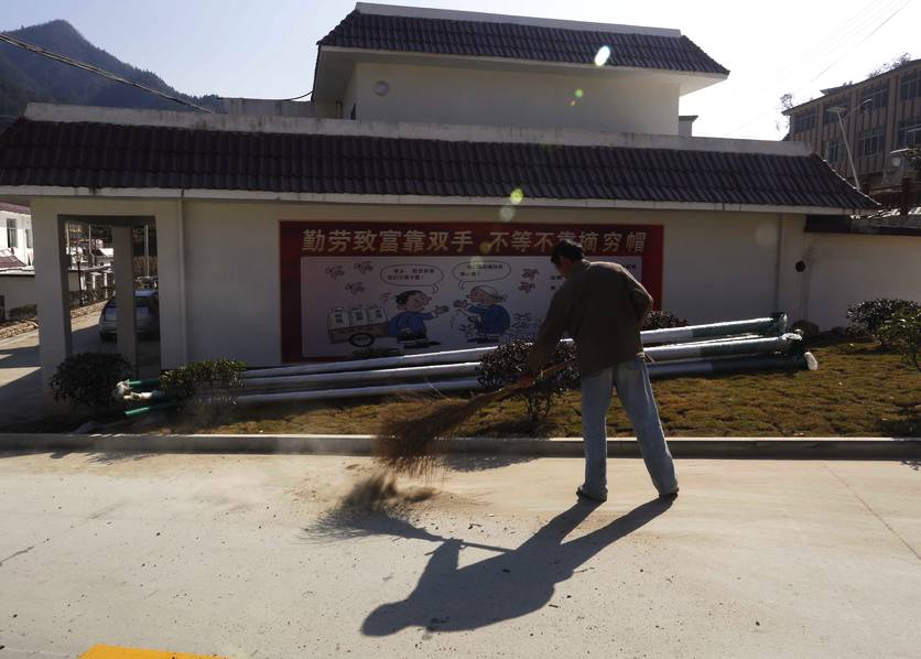 1973年出生的熊集根,正在村道清理卫生。幼年时,父亲去世,熊集根与肢残老母亲相依为命,7年前,母亲去世,他又承担起赡养孤身一人的叔叔熊恩艳的担子。熊集根说,他相亲了好几次,女方对他本人满意,但只要谈到要赡养叔叔,姑娘都拔脚就走。今年,熊集根的主要任务就是脱单成家。祝福他心想事成。