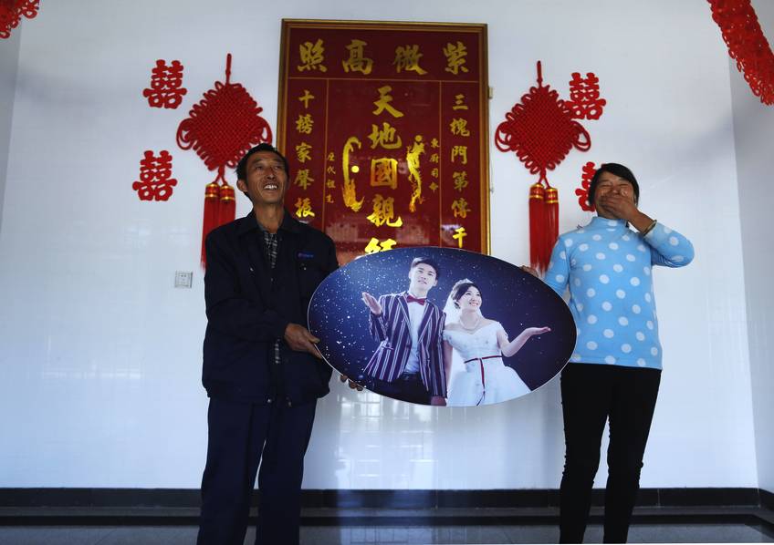 两年前关于“安徽光棍村”的报道,在网上随便一搜都有近十万条结果,大部分与安徽省岳西县青天乡老鸭村有关。时隔两年,那里又会发生哪些变化呢?当摄影师再次走进这座小山村,见到当地村民王学军拿出儿子与漂亮儿媳的结婚照,乐得合不拢嘴。