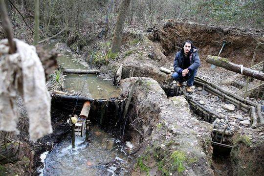 丹尼尔在森林里寻找木材,从河床里挖来黏土,在空地上打造房子。丹尼尔建了不同的房子,一个是用来睡觉、吃饭的,另一个用来摆放一些工具,里面还有个小型卫生间。原始生活非常简单,丹尼尔蹲在小溪旁。他用自己的学识在小溪里建了个过滤系统,还有一个水轮,这样就可以喝上干净的饮用水。