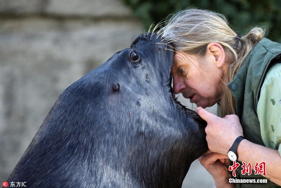 维也纳动物园海狮卖萌求抱抱 “调戏”饲养员