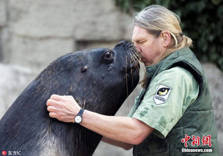 维也纳动物园海狮卖萌求抱抱 “调戏”饲养员
