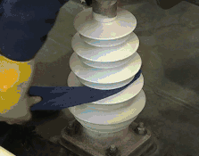 登上车顶,对瓷瓶进行擦拭。