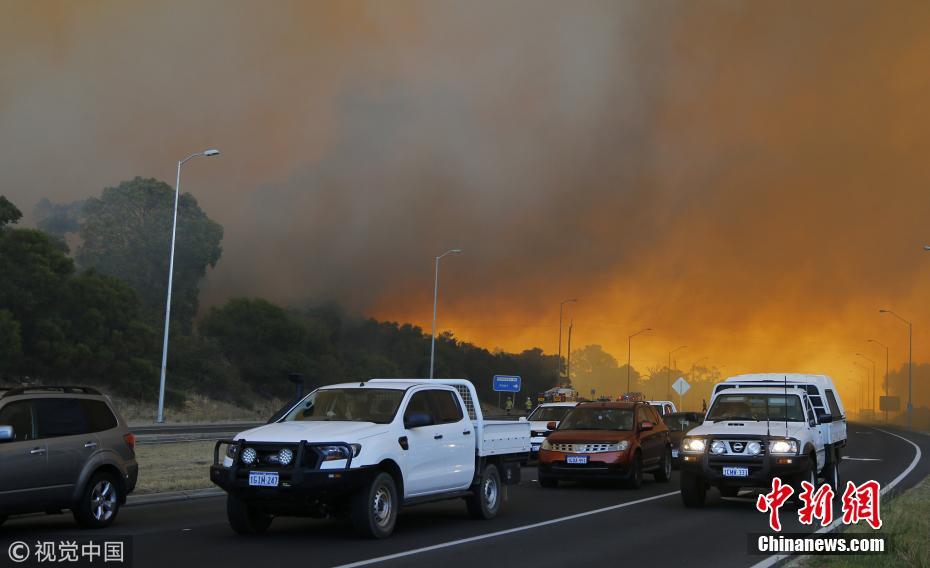 当地时间2018年3月10日,澳大利亚班伯里,失控的大火蔓延至班伯里东部地区,逼近附近的房屋,居民已被疏散。图片来源:视觉中国