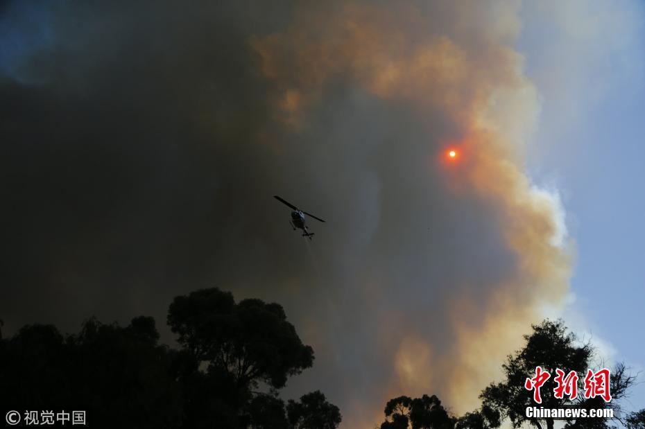 澳大利亚山火失控逼近住宅 直升机参与灭火