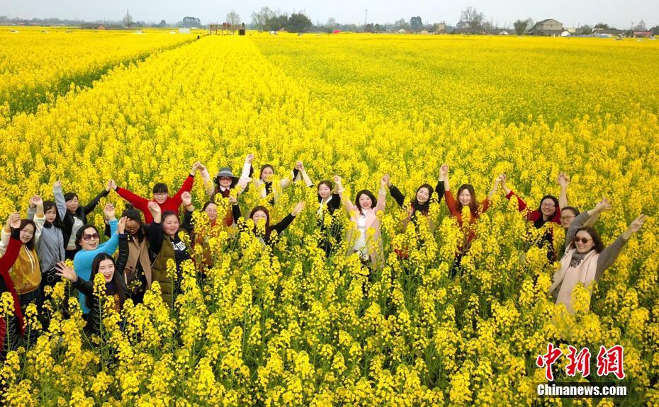 油菜花海中的女游客们。刘忠俊 摄