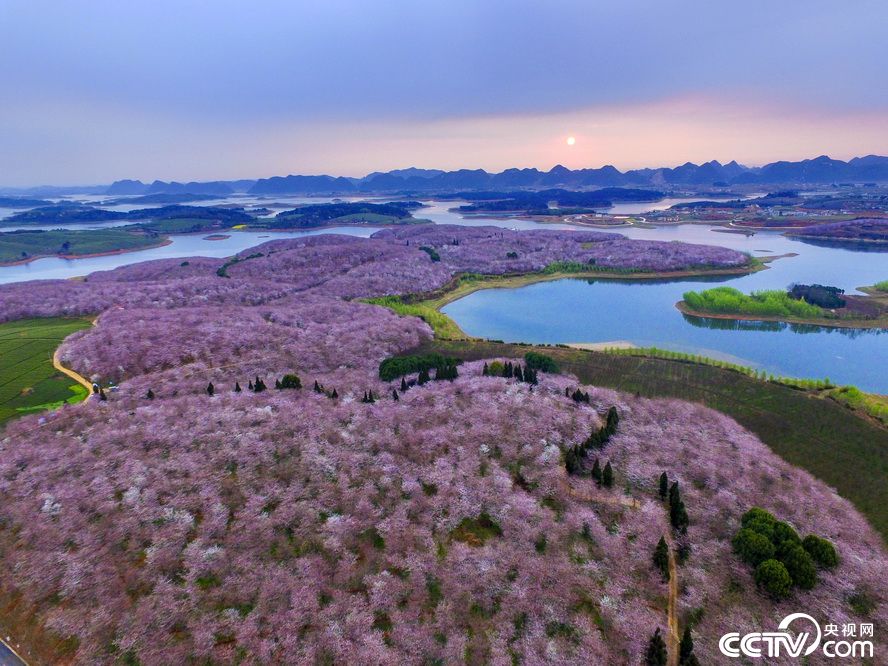 贵阳:农场万亩樱花开放 高空俯瞰景色迷人