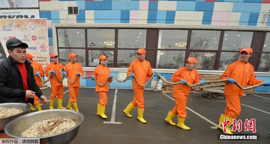 吉尔吉斯斯坦厨师制作世界最大肉面 总重近1.5吨