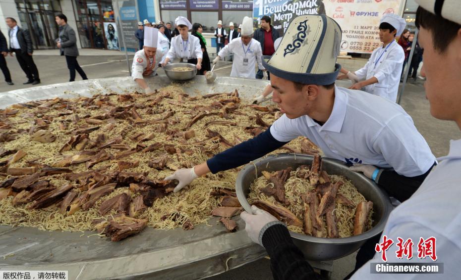 吉尔吉斯斯坦厨师制作世界最大肉面 总重近1.5吨