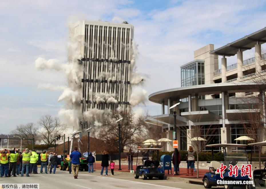 美国肯塔基州州府最高建筑内爆 28层高楼顷刻倒塌