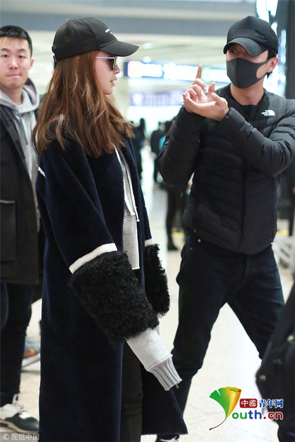 Angelababy素颜深夜回京 邓超举“空气相机”猛拍