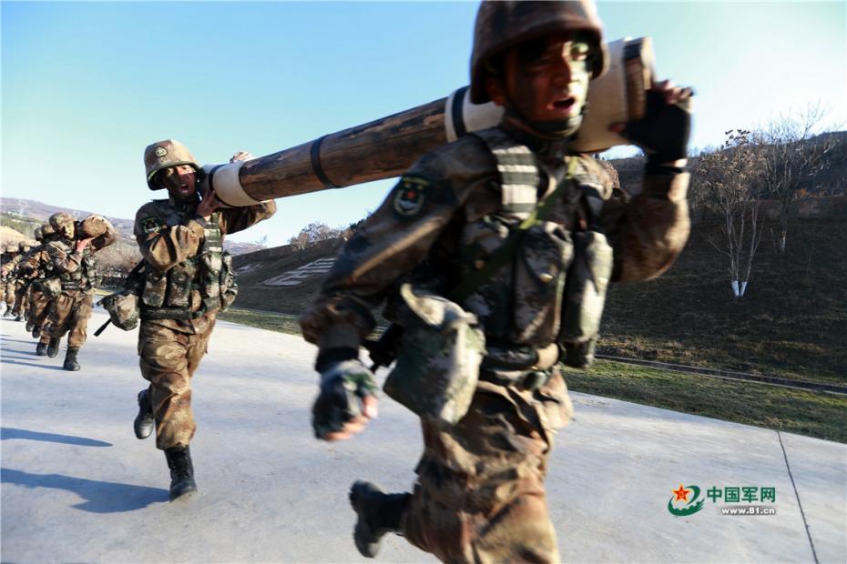 3月10日,陆军第76集团军某旅侦察营官兵进行扛圆木跑等极限体能训练。袁宏彦 陈阳 夏玉清摄影报道 图片来源:中国军网