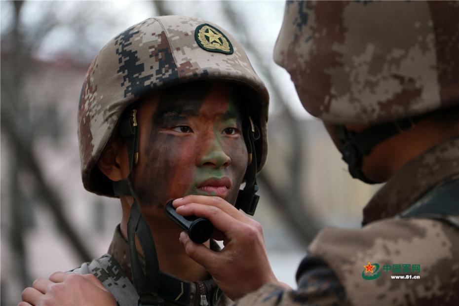 3月8日,陆军第76集团军某旅侦察营官兵进行面部伪装。袁宏彦 陈阳 夏玉清摄影报道 图片来源:中国军网