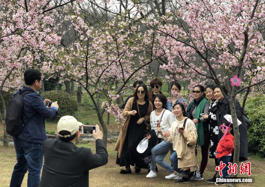 无锡太湖鼋头渚早樱绽放引游人“争拍”