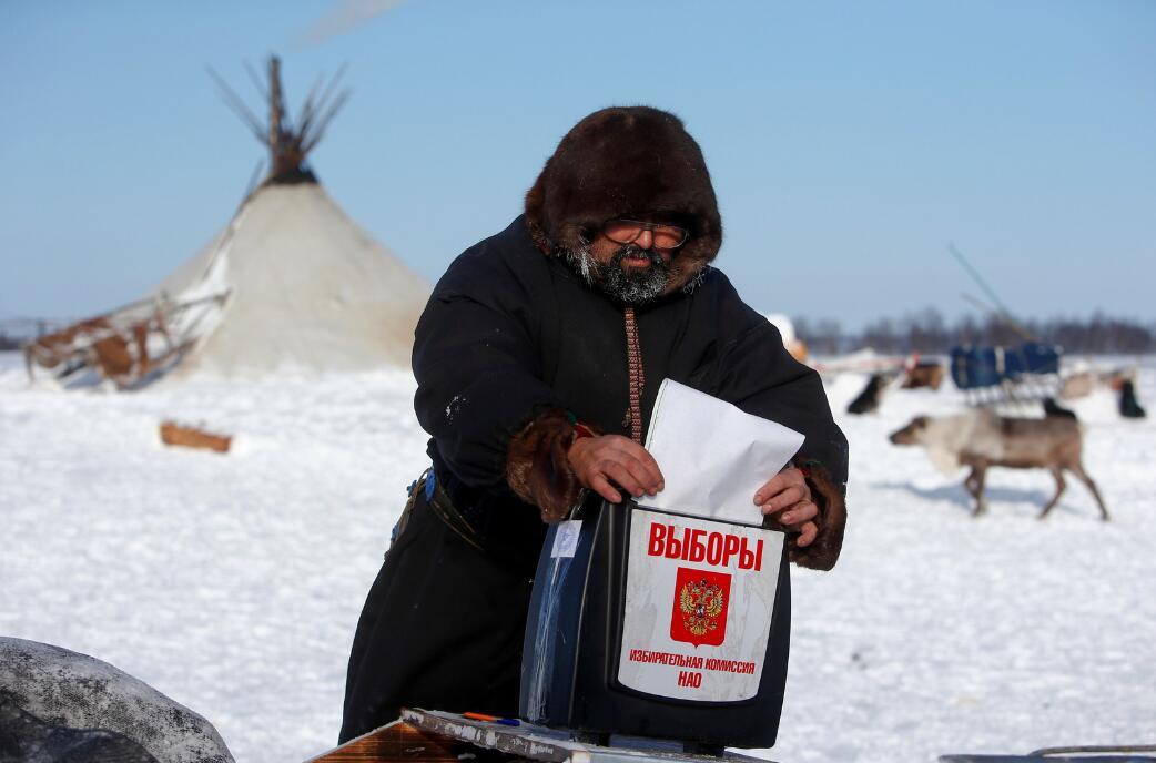 据“今日俄罗斯”报道,尽量距离俄总统大选还有4天时间,但为了便于统一计票,俄联邦涅涅茨自治区边远牧区的牧民们已经提前开始投票。