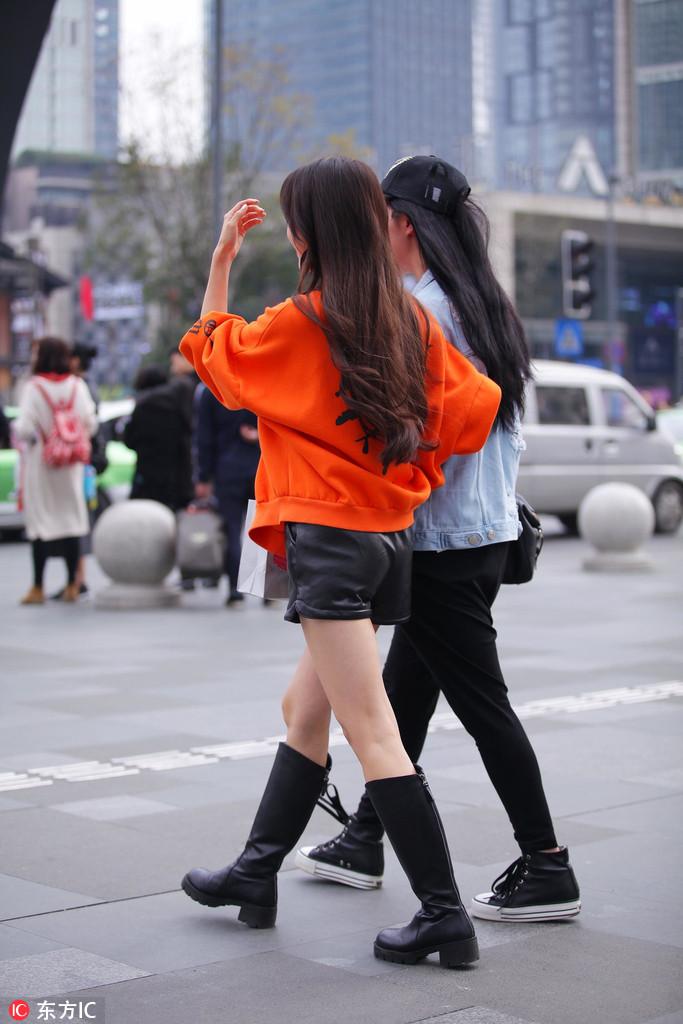 2018年3月12日,成都连日气温回升,在成都春熙路商圈、太古里、IF广场上美女成为风景线。供图:东方IC