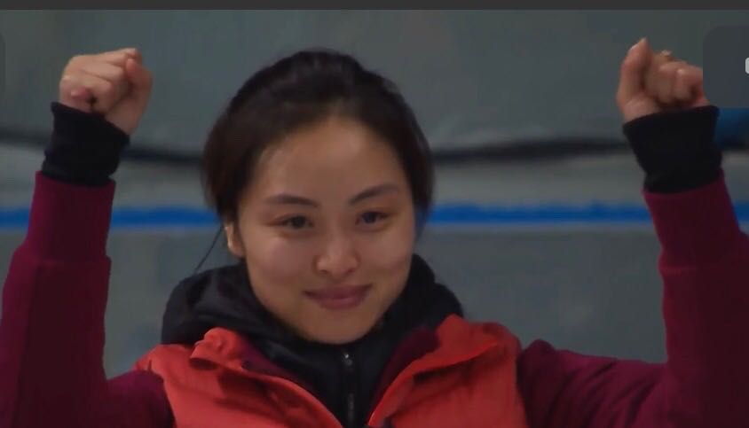 图为中国轮椅冰壶队主教练岳清爽、前中国冰壶队队员,看到队员获胜的那一刻,眼睛湿润了。