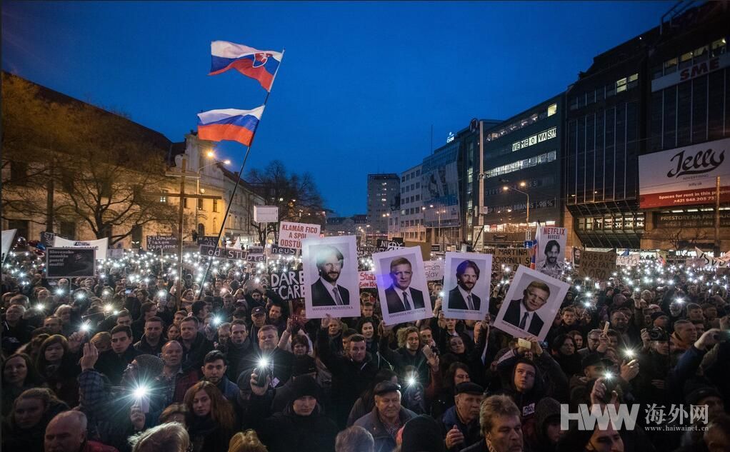 斯洛伐克记者遭暗杀 民众举行反腐游行