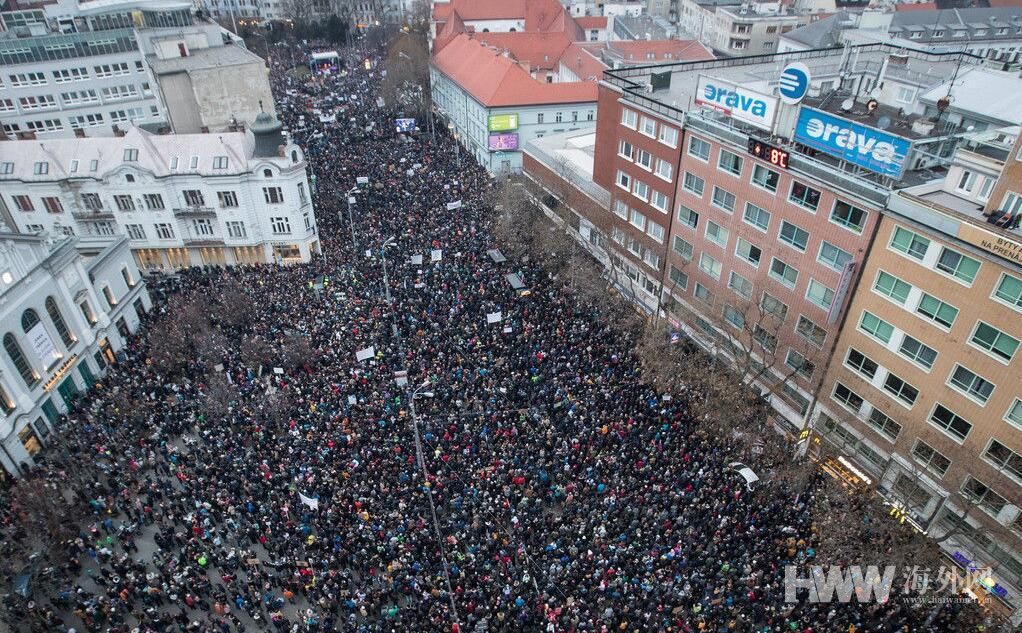 斯洛伐克记者遭暗杀 民众举行反腐游行