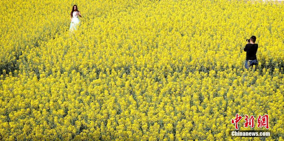贵州施秉马溪千亩油菜花绽放,吸引游客前来观赏。李忠果 摄