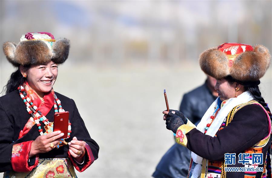 3月17日,山南市乃东区门中岗村农民直播春耕开犁仪式。当日,西藏各主要农耕区农民举行传统盛大的春耕开犁仪式,祈求风调雨顺、五谷丰登。新华社记者 觉果 摄