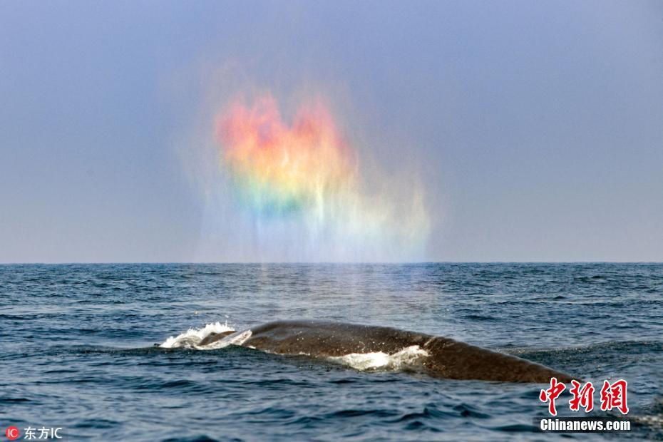 浪漫!斯里兰卡蓝鲸喷出惊艳“彩虹心”