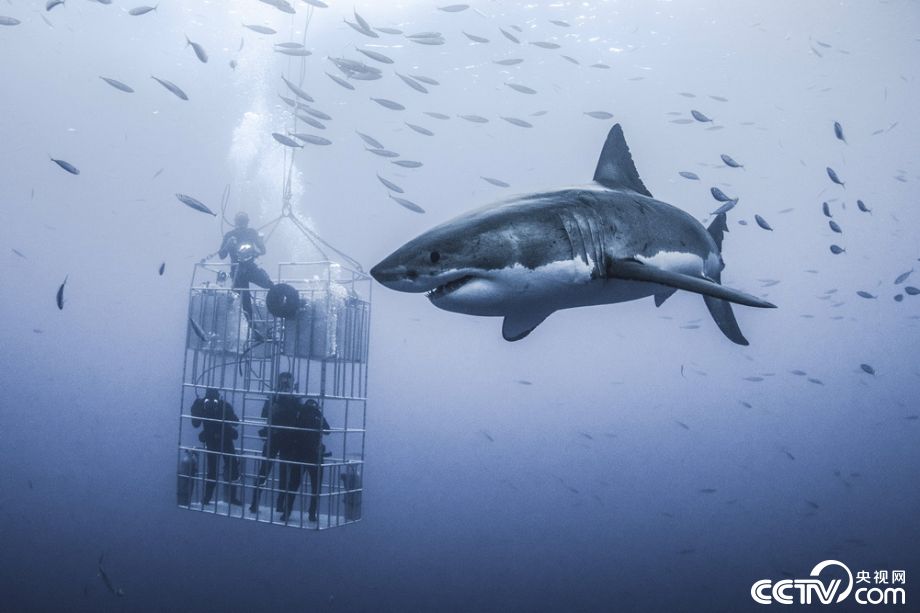 近日,墨西哥瓜达卢佩群岛,一条6米长、两吨多重的大白鲨穿过在一群亮闪闪的鲭鱼,靠近了承载着研究人员的笼子,一直绕笼子盘旋。人类体型与之相较实在不值一提。35岁的水安全专家约翰·马厄(John Maher)为一个鲨鱼研究项目拍摄了这些照片。他来自加利福尼亚州拉霍亚,乘船一天多才到达瓜达卢佩岛附近的水域,花了三天时间记录下各种大白鲨。 视觉中国